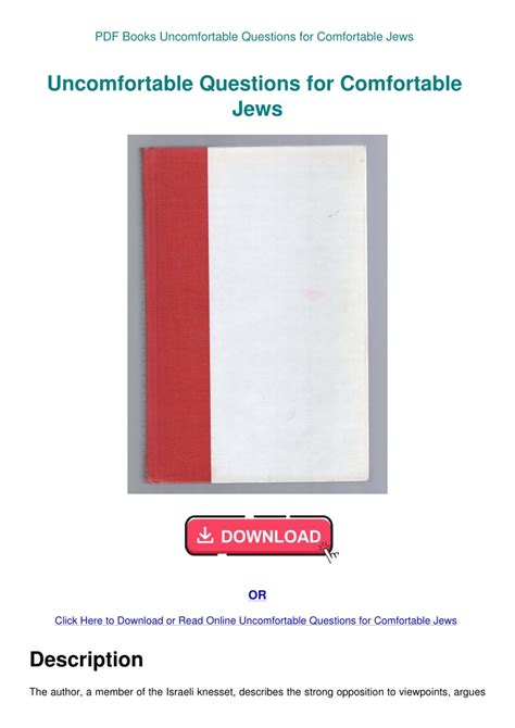 Uncomfortable Questions for Comfortable Jews Reader By Click Button. Uncomfortable Questions for Comfortable Jews it’s easy to recommend a new book category such as Novel, journal, comic, magazin, ect. You see it and you just know that the designer is also an author and understands the challenges involved with having a good book. You can easy klick for detailing book and you can read it online, even you can download it